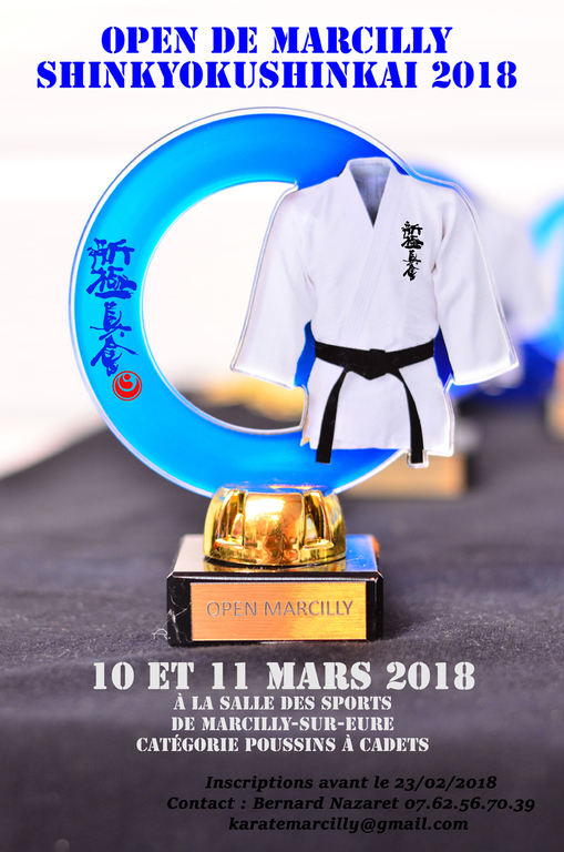 Vous êtes cordialement invités au 15eme Open de karaté " Enfants" de Marcilly-sur-Eure que le club organise les 10 et 11 mars 2018 à la salle des sports.