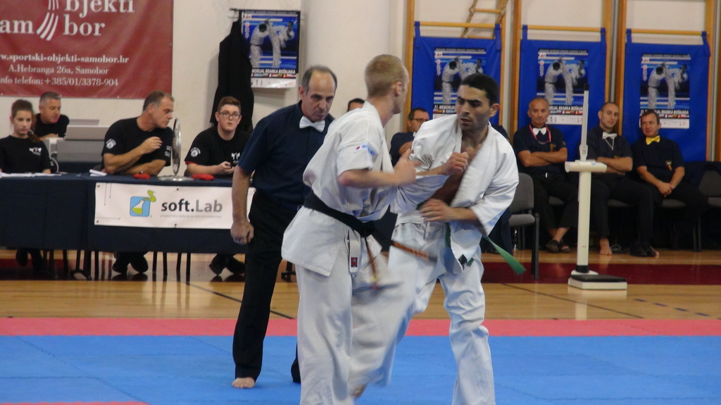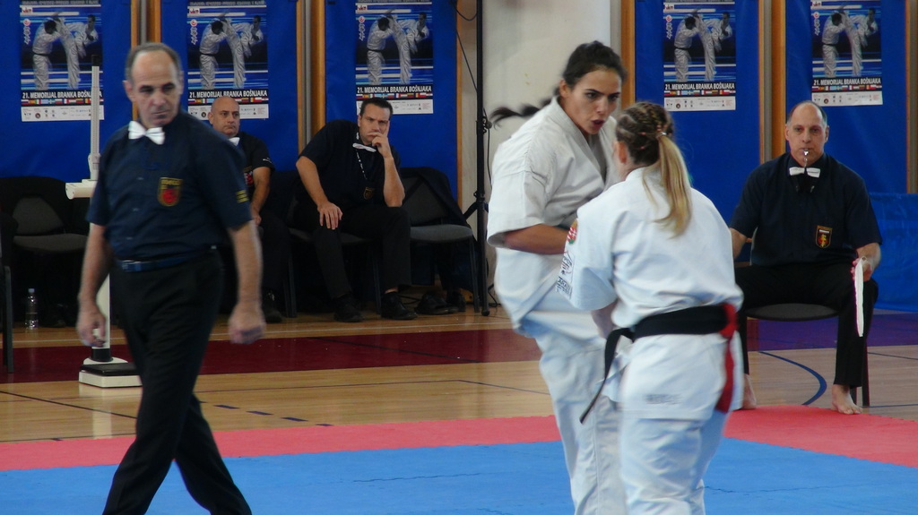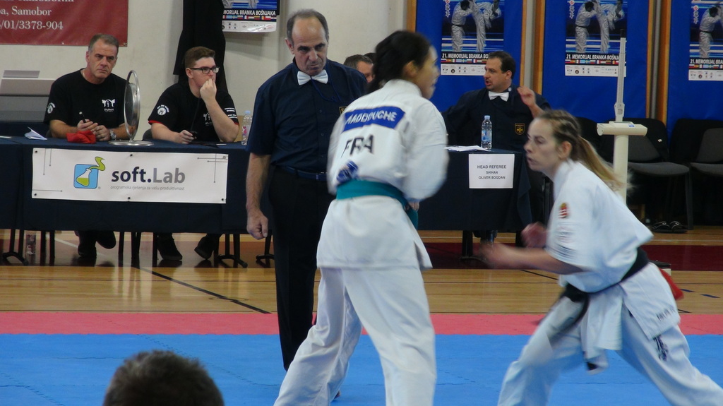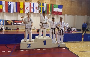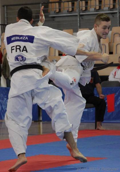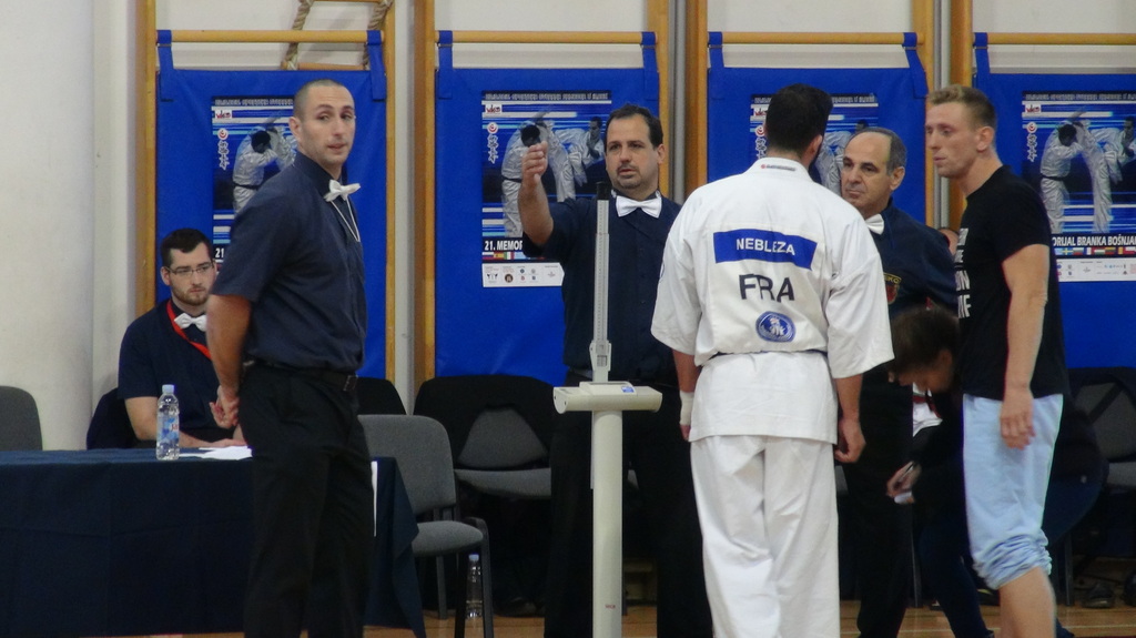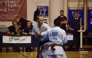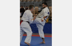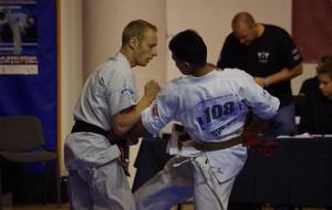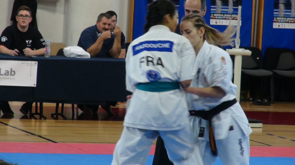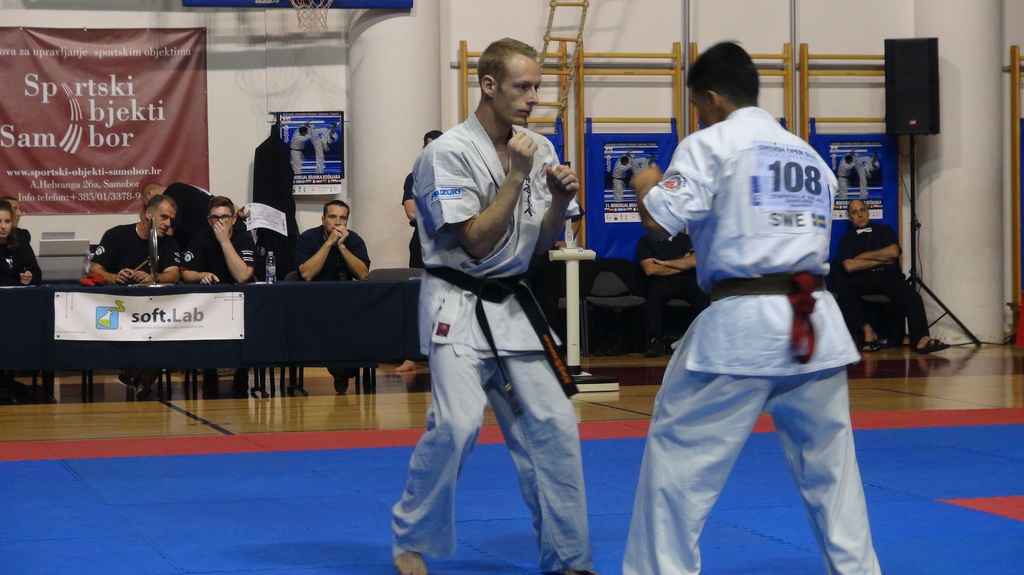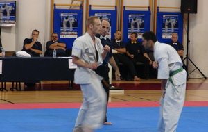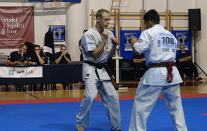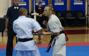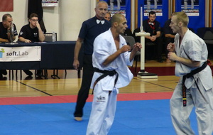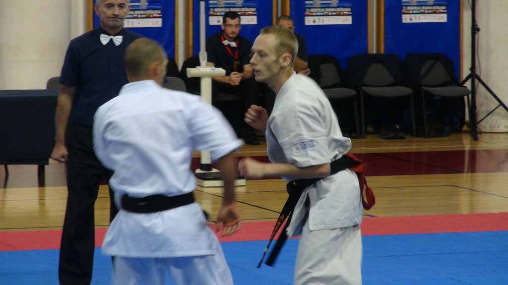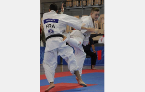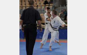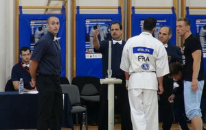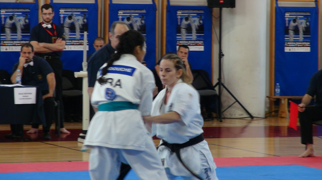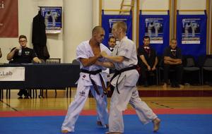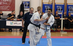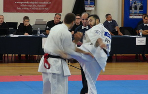 Thierry est le premier de l'équipe à monter sur le tatamis. il rencontre un bulgare avec de très bonnes jambes Jodan, mais Thierry ne se laisse pas impressionner et à l'aide d'un shita au foie il obtient un avantage et gagne le match ! Ensuite arrive le tour de Camille qui rencontre une combattante hongroise le mat...ch démarre plutôt correctement personne ne prend réellement l'avantage quand dans les dernières seconde Camille place un super crochet dans la pointe du menton de son adversaire ! Celle ci complètement sonnée ne pourra pas répondre le combat par arrêt du médecin Camille se retrouve donc disqualifiée ! Au deuxième tour Thierry rencontre un suédois bien connu dans le circuit les minutes additionnes mais apres un combat sans relâche Thierry s'incline à la décision apres 7 min. Deux français sur trois dehors du circuit. Apres une longue période d'attente Anthony se présente face à hongrois redoutable en poing mais plusieurs fois piquer au ventre il baisse le régime et Anthony lui l'augmente ce qui lui donne la victoire en 5 min. Le combat qui suit n'est pas une mince affaire Anthony rencontre le Bulgare connu de tous vice champion d'Europe et champion du monde kwu. Le même combattant qui avait sorti Antho au dernier championnat d'Europe. Anthony déterminé à ne pas perdre il m'est la pression à son adversaire et obtient une égalité au premier round puis toujours le même travail de pression et de timing là : deux drapeau pour Antho. Il en reste plus qu'un et c la victoire chose faite à la fin des 7 min 4 drapeaux ! Il faut recharger vite car la finale est proche ! Et Antho et bien fatigué on peut le lire sur son visage. Place à la finale face à un suédois bien en place qui réveille des douleurs dans la poitrine d'Anthony ce qui laisse place pour une ouverture au foie. Le suédois l'emporte sur iPpon.
