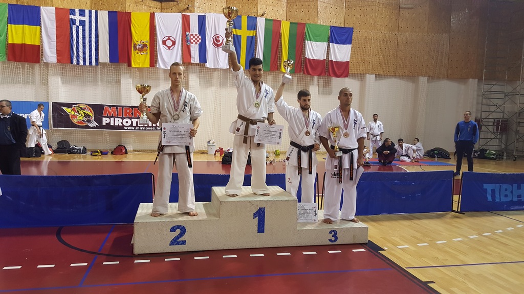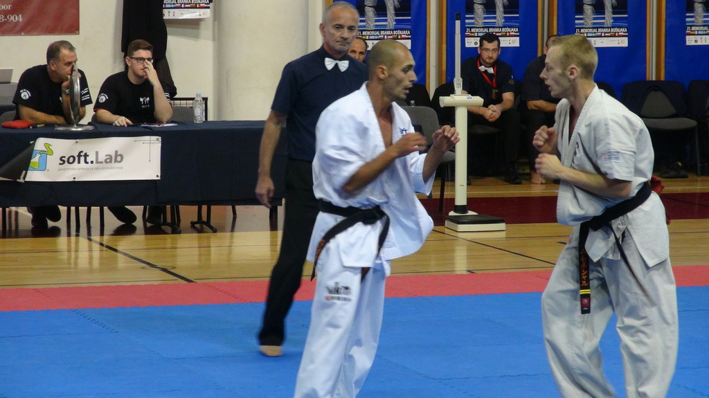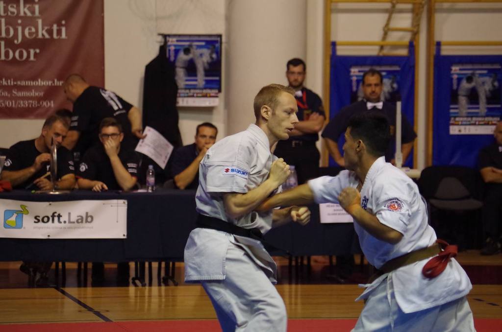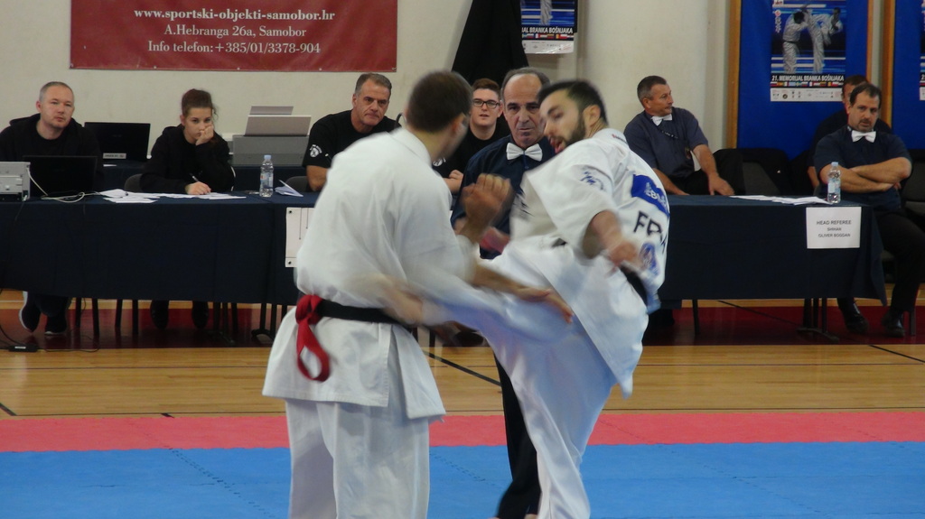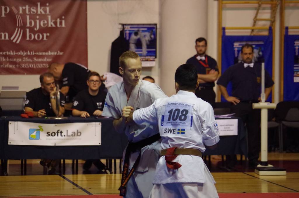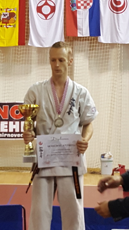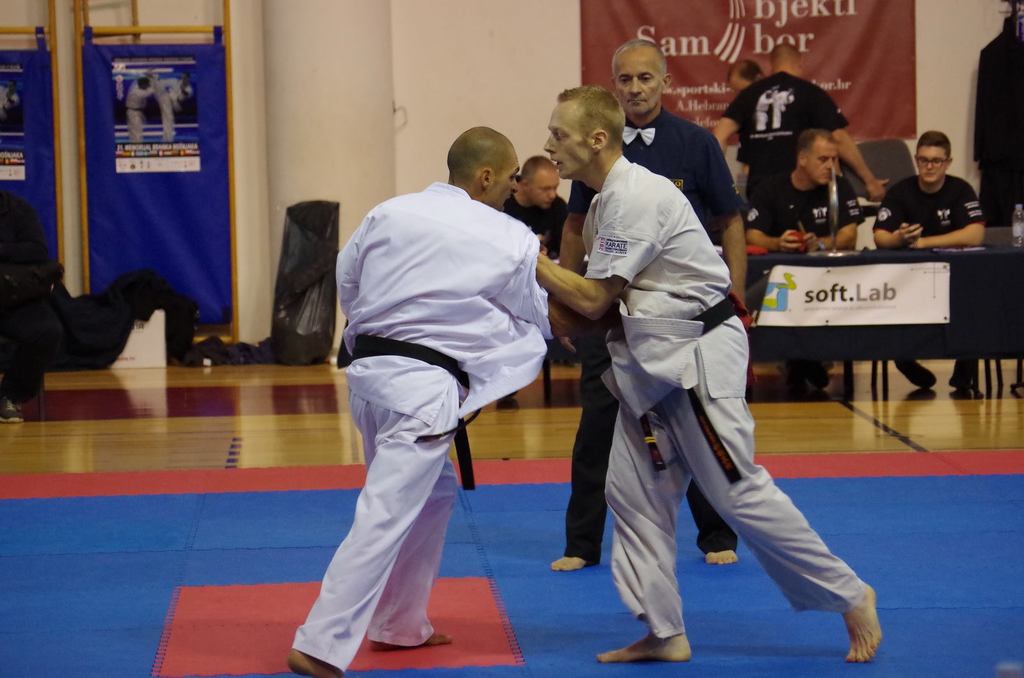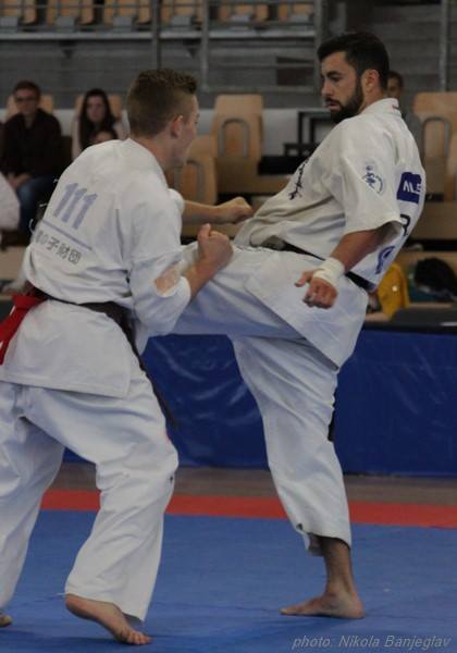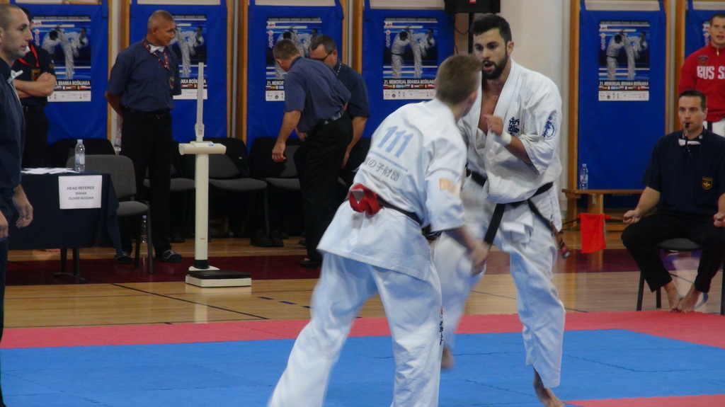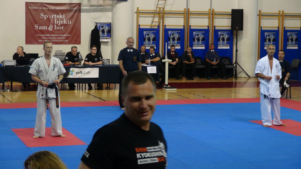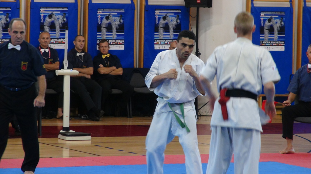 Thierry est le premier de l'équipe à monter sur le tatamis. il rencontre un bulgare avec de très bonnes jambes Jodan, mais Thierry ne se laisse pas impressionner et à l'aide d'un shita au foie il obtient un avantage et gagne le match ! Ensuite arrive le tour de Camille qui rencontre une combattante hongroise le mat...ch démarre plutôt correctement personne ne prend réellement l'avantage quand dans les dernières seconde Camille place un super crochet dans la pointe du menton de son adversaire ! Celle ci complètement sonnée ne pourra pas répondre le combat par arrêt du médecin Camille se retrouve donc disqualifiée ! Au deuxième tour Thierry rencontre un suédois bien connu dans le circuit les minutes additionnes mais apres un combat sans relâche Thierry s'incline à la décision apres 7 min. Deux français sur trois dehors du circuit. Apres une longue période d'attente Anthony se présente face à hongrois redoutable en poing mais plusieurs fois piquer au ventre il baisse le régime et Anthony lui l'augmente ce qui lui donne la victoire en 5 min. Le combat qui suit n'est pas une mince affaire Anthony rencontre le Bulgare connu de tous vice champion d'Europe et champion du monde kwu. Le même combattant qui avait sorti Antho au dernier championnat d'Europe. Anthony déterminé à ne pas perdre il m'est la pression à son adversaire et obtient une égalité au premier round puis toujours le même travail de pression et de timing là : deux drapeau pour Antho. Il en reste plus qu'un et c la victoire chose faite à la fin des 7 min 4 drapeaux ! Il faut recharger vite car la finale est proche ! Et Antho et bien fatigué on peut le lire sur son visage. Place à la finale face à un suédois bien en place qui réveille des douleurs dans la poitrine d'Anthony ce qui laisse place pour une ouverture au foie. Le suédois l'emporte sur iPpon.