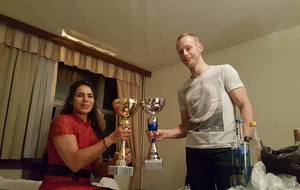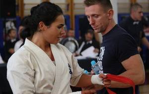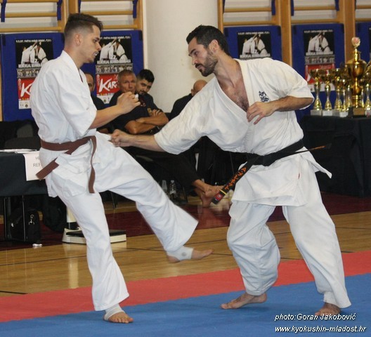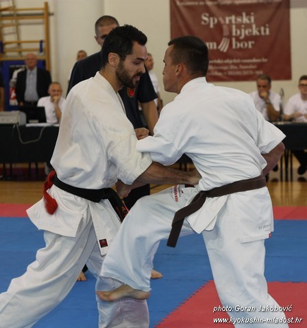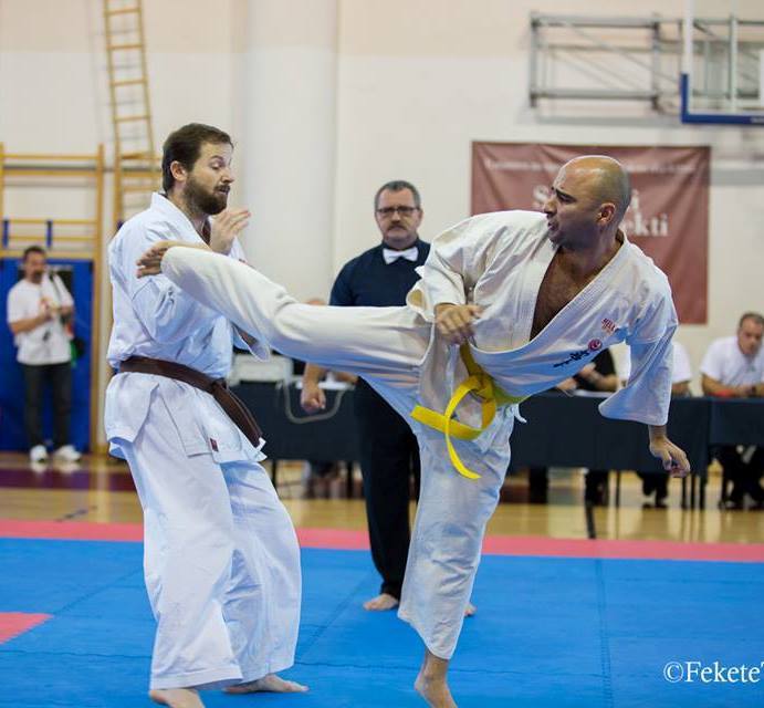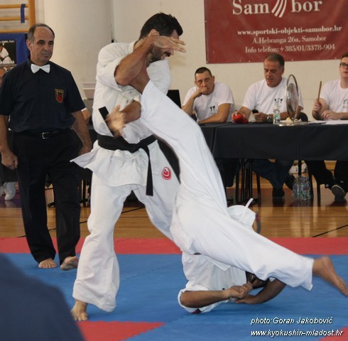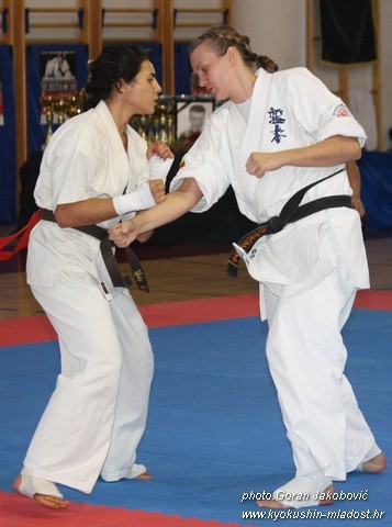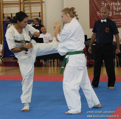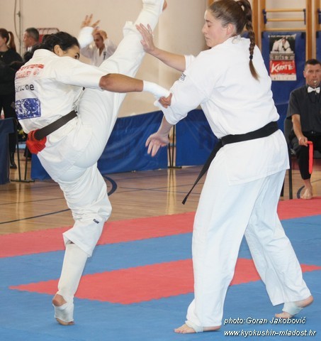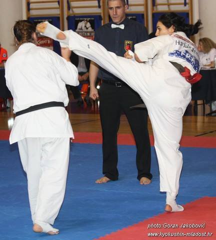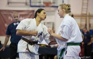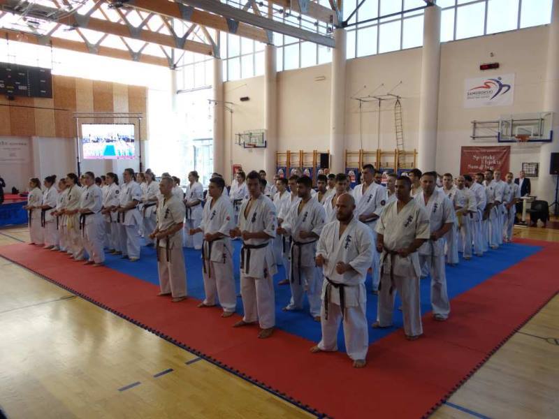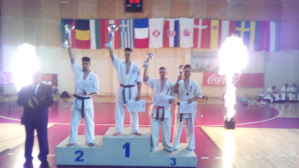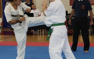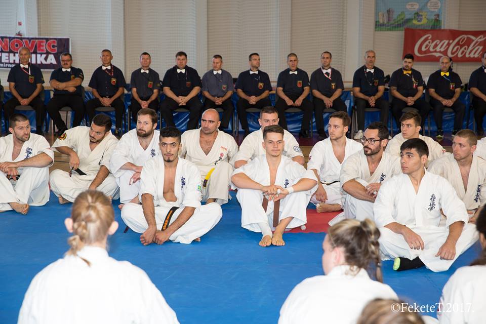 SAMEDI 14 OCTOBRE 2017, a eu lieu l'Open de Croatie organisé par Shihan Milan Garasic, auquel participait une délégation de FSKO. Un accueil exceptionnel avec une welcome party le vendredi soir, suivie d'un draw organisé en présence de tous les officiels. Celui-ci n'est pas particulièrement favorable aux Français, car Camille Had de l'ASO (filles HW) et Aurélien Brennet du Nintai Dojo (-75) ont un tour supplémentaire. Anthony Sénéchal (ASO) à l'inverse étant tête de liste, est directement en 1/2 finales mais dans une cat des -65 avec un niveau exceptionnel. Damien Varasse (Nintai) en -85, sera opposé au 1er tour à un Grec. Olivier Vity (Pres FSKO Marcilly) s'occupera comme à son habitude à filmer le tournoi, Johnny Desmedt à coacher ses combattants et Sébastien Vanroyen à coacher les siens et à arbitrer. Aure Brownie appelé le 1er, gagne son combat en 2 rounds face à un combattant croate. Damien gagne son combat en 2 R également face au Grec. Camille se débarasse en 2R d'une bonne combattante suédoise. Aure Brownie gagne ensuite contre un combattant koweïtien là encore en 2R et se trouve en 1/2! Camille Had est opposée à une Croate bien plus imposante et il faudra attendre les 2 R pour une victoire au poids (+20kilos d'écart). Elle est donc elle aussi en 1/2! Dam Niennien est opposé à une tête de liste, combattant hongrois exceptionnel. Il tente sa chance, amène quelques bons gedan, mais se fait surprendre au corps. Il sort grandi de ce tournoi. Aure Brownie est ensuite opposé à un autre combattant magyar et se fait lui aussi surprendre mais par un mawashi jodan. Ces deux combattants seront les futurs vainqueurs de leur catégorie. Anthony Sénéchal est enfin appelé face à un combattant suédois d'origine bulgare, livre un superbe combat et gagne en toute logique malgré le très bon niveau de son adversaire. Camille est appelée face à une redoutable lituanienne, mais lui rend coup pour coup durant 3 R et gagne là encore à la balance. En finale, elle rencontre une combattante espagnole ayant bénéficié d'un tableau plus aisé et la domine jusqu'à ce que dans le 2ème R, cette dernière se blesse en retombant sur le bras. Camille obtient donc la 1ère place et le trophée du Best Spirit. Anthony est également 1er, vu que son adversaire blessé ne pourra combattre en finale. Aurelien est 3ème. Sébastien a été juge toute la journée, puis choisi pour être dans le tableau final et on lui a proposé d'arbitrer une des finales. Ce ut donc un week-end très positifs pour le shin français!!! A très vite dès ce we pour l'open de Touraine!! OSU. Sensei Sébastien Vanroyen, BC CR FSKO.