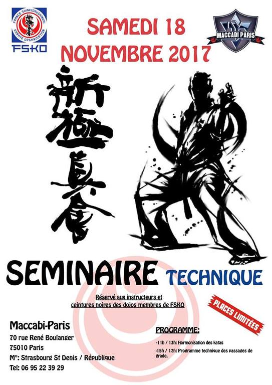 SEMINAIRE TECHNIQUE AU MACCABI PARIS DE SENSEI PERNAS SAMEDI 18 NOV DE 11H A 13H ET 15H ET 17H.