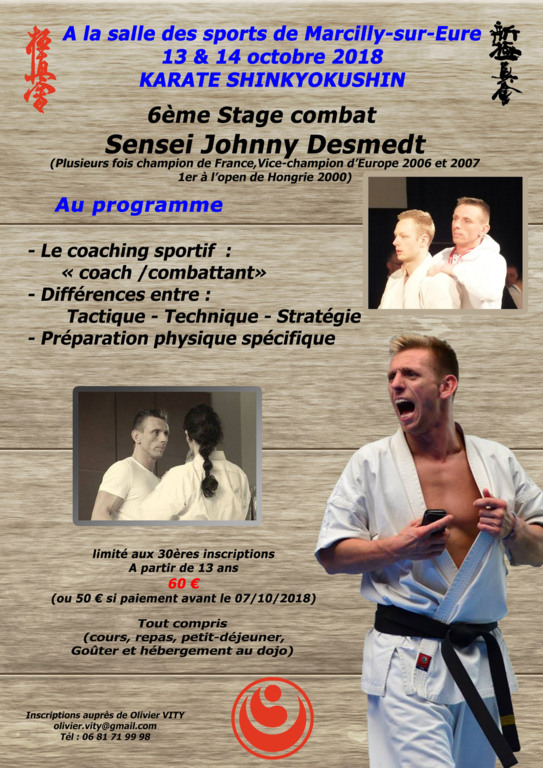 Johnny DESMEDT au 06 21 53 04 53 aso.kyokushin@gmail.com