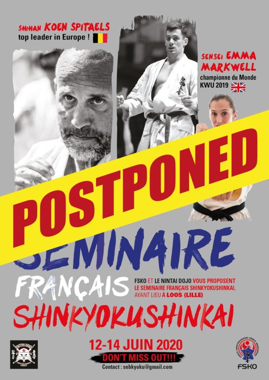 Décalage du Séminaire national FSKO prévu initialement les 12,13 et 14 juin 2020. COVID 19 --> regroupement interdit / Hotels fermés.
